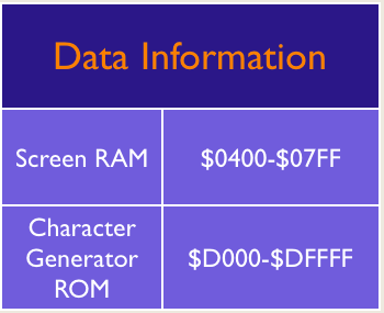 - 8Kb of RAM within the 16Kb area of the VIC-II needs to be reserved to store a full bitmap graphic